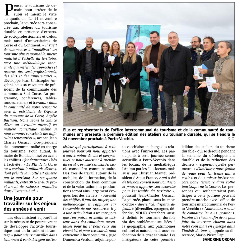 Intercommunalité Sud Corse : Vers un tourisme responsable vis à vis du territoire @CorseMatin