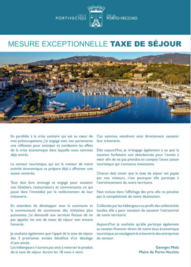 Mesure exceptionnelle : Taxe de séjour @Ville de Porto-Vecchio