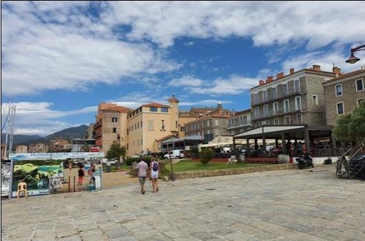 | La place Porta, lieu central de Sartène, voit le retour progressif des touristes. |